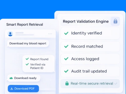 Not just a chatbot. It connects to your HMS to book slots and fetch files.